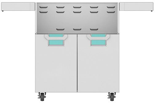 This grill-ready cart matches the 30” built-in grill in heavy-duty form and function. Fold-down side shelves offer extra work space when you need it. The two-door design allows easy access to gas tank and grilling tools. Commercial-grade casters deliver easy maneuverability.Read More