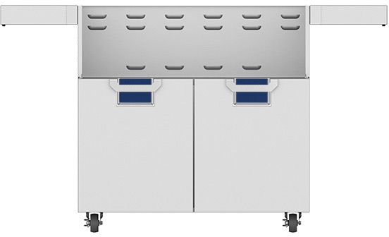This grill-ready cart matches the 36” built-in grill in heavy-duty form and function. Fold-down side shelves offer extra work space when you need it. The two-door design allows easy access to gas tank and grilling tools. Commercial-grade casters deliver easy maneuverability.Read More